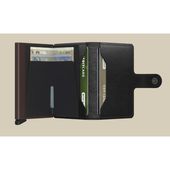 Die Miniwallet ist klein und doch überraschend groß, es kombiniert das Beste aus beiden Welten. Während sich auf der einen Seite Banknoten, Quittungen und Karten, leicht verstauen lassen, können Sie auf der anderen Seite mit dem Aluminium Cardprotector Ihre Karten mit einer einfachen Bewegung herausschieben. Außerdem sind Ihre Karten vor Biegen, Brechen und vor unerwünschter drahtloser Kommunikation geschützt.